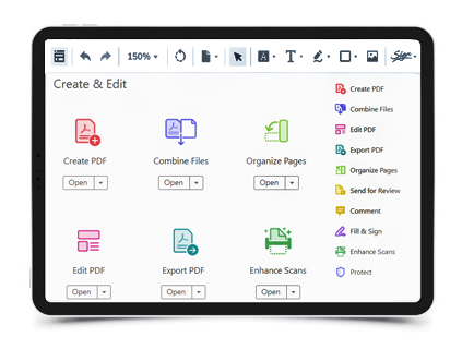 Work on documents anywhere using the Acrobat Reader mobile app. It’s packed with all the tools you need to convert, edit and sign PDFs. You can use your device camera to capture a document, whiteboard or receipt and save it as a PDF.