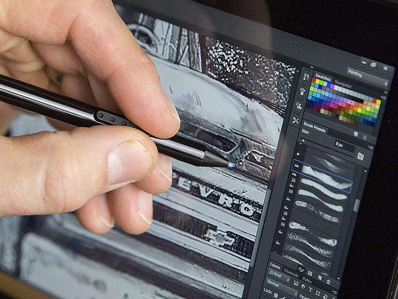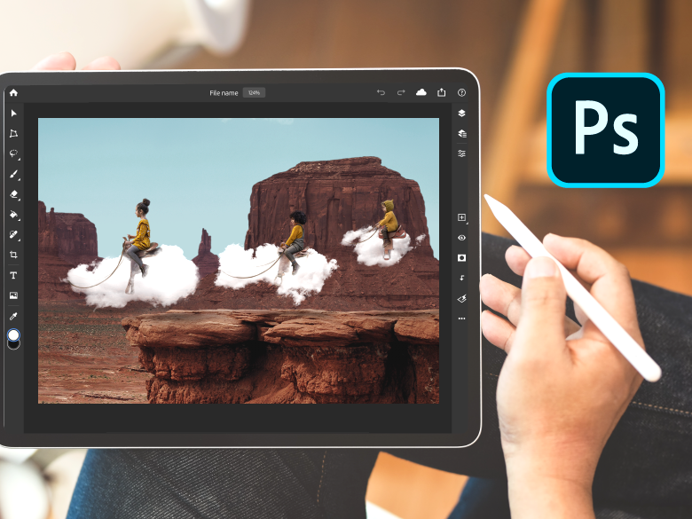 Posters, packaging, banners, websites — all your design projects start with Photoshop. Combine photos and text to create entirely new images. Work with unlimited layers and masks. And paint with brushes that you control with stylus or touch on your iPad.